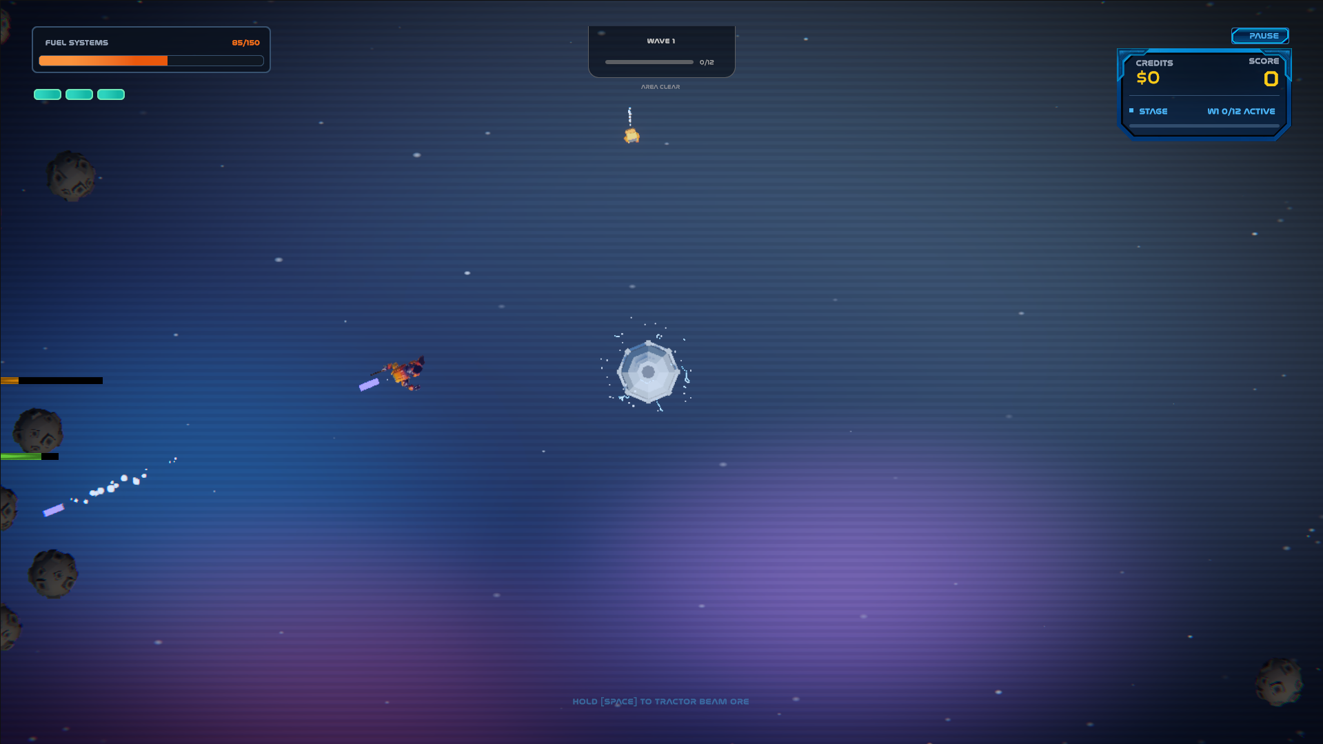 Puxe e extraia recursos valiosos dos destroços cósmicos.